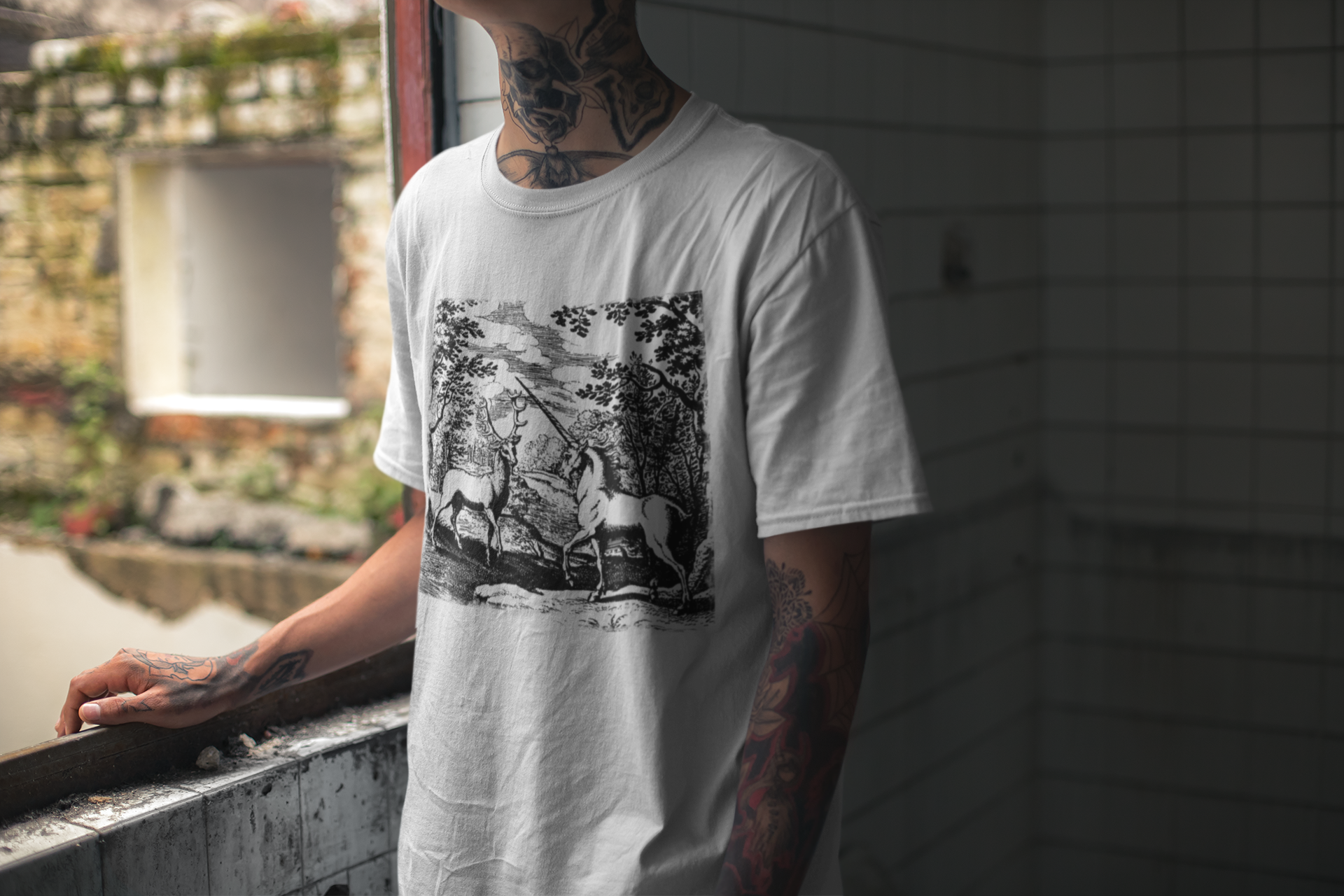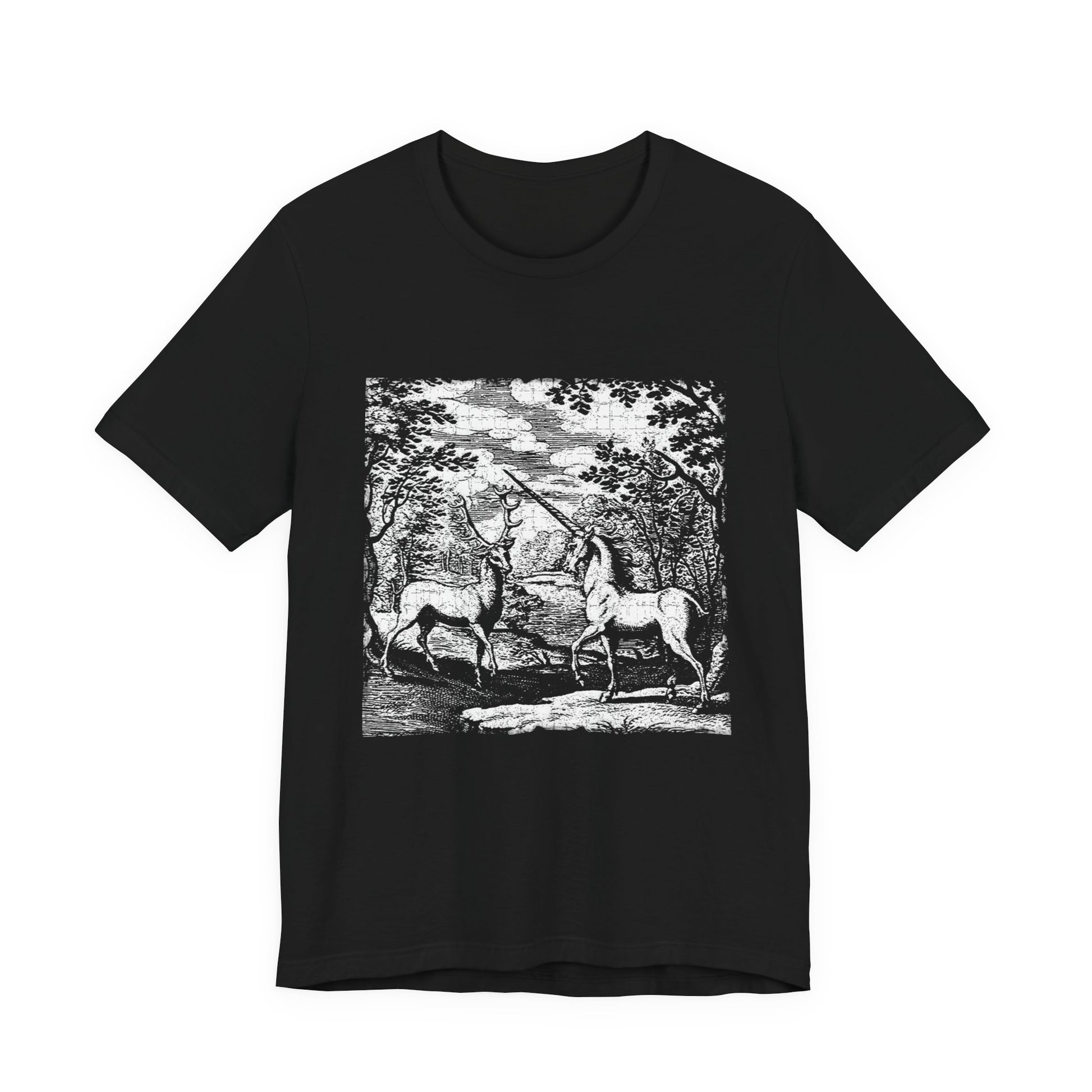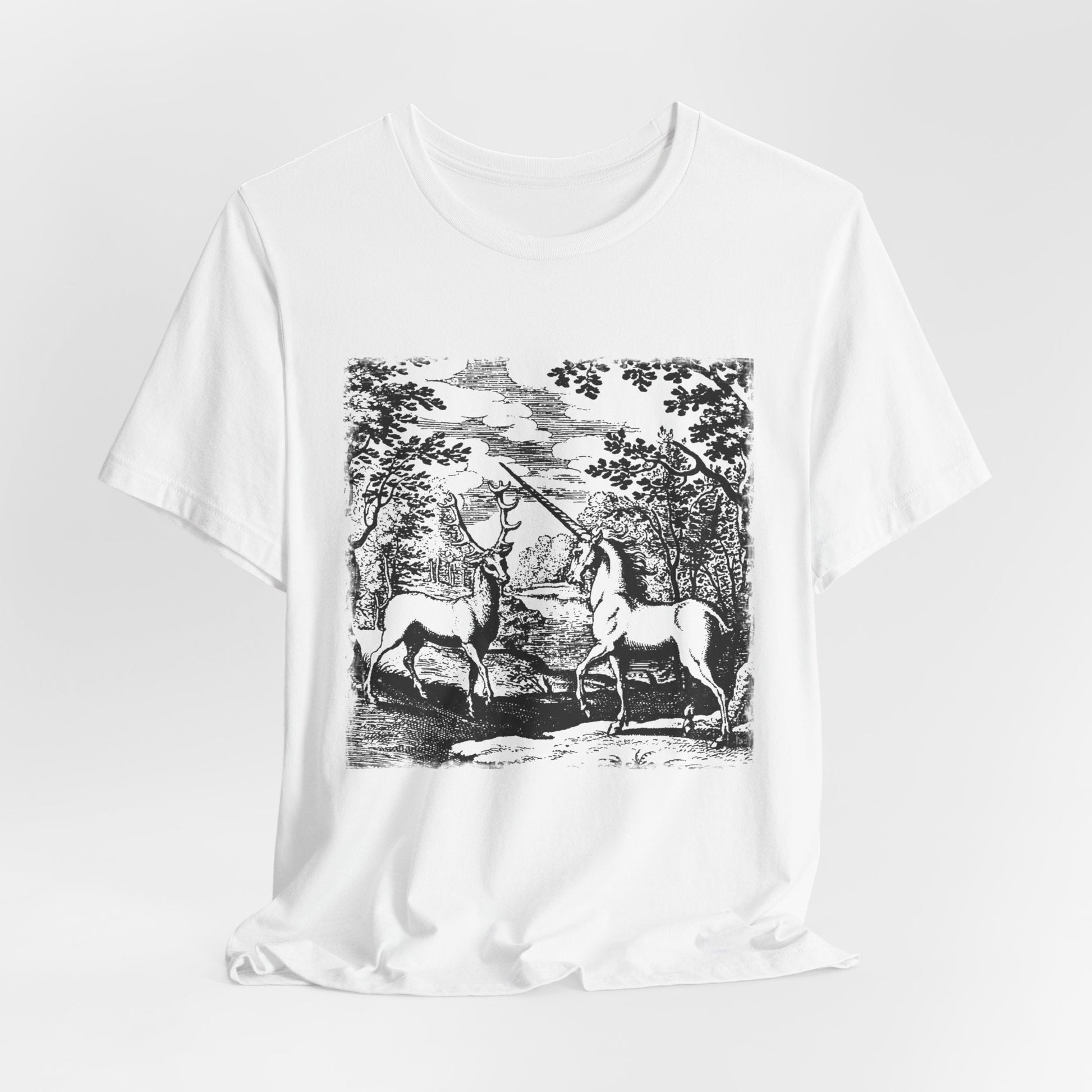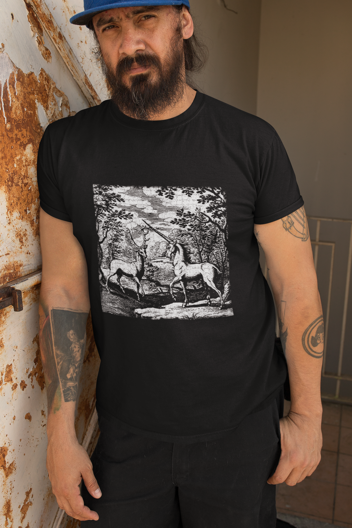 Alchemy Unicorn and a Deer Graphic Print T-Shirt, Mythical Creature Novelty Shirt, Unisex Top