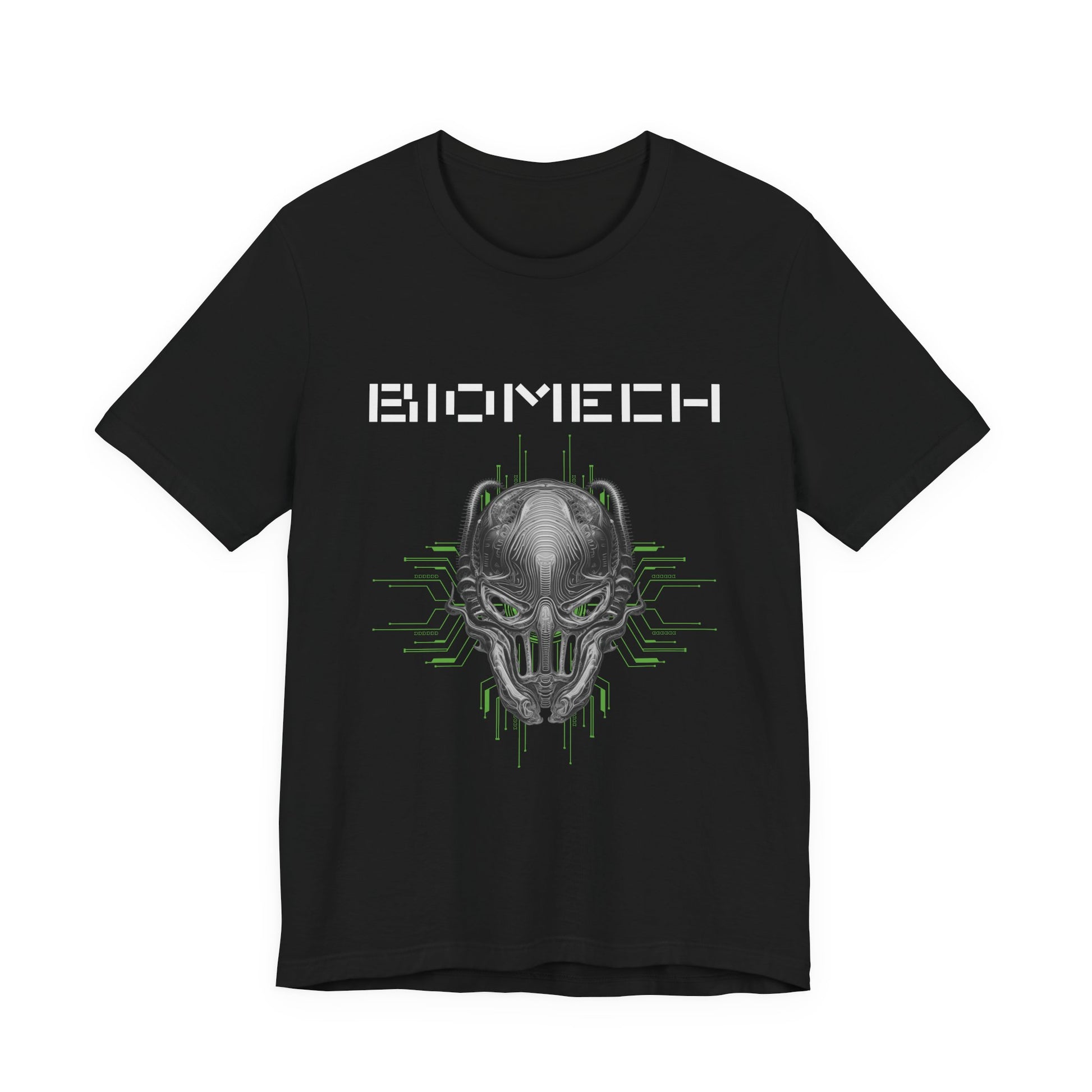 Biomechanoid Graphic Print T-Shirt, Cyborg Unisex Top, Futuristic Novelty Shirt