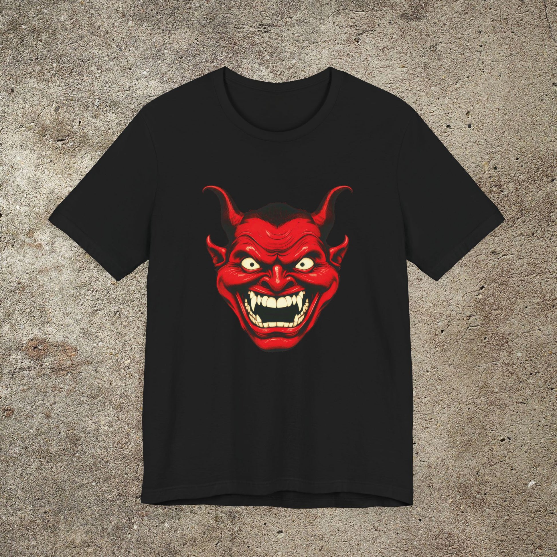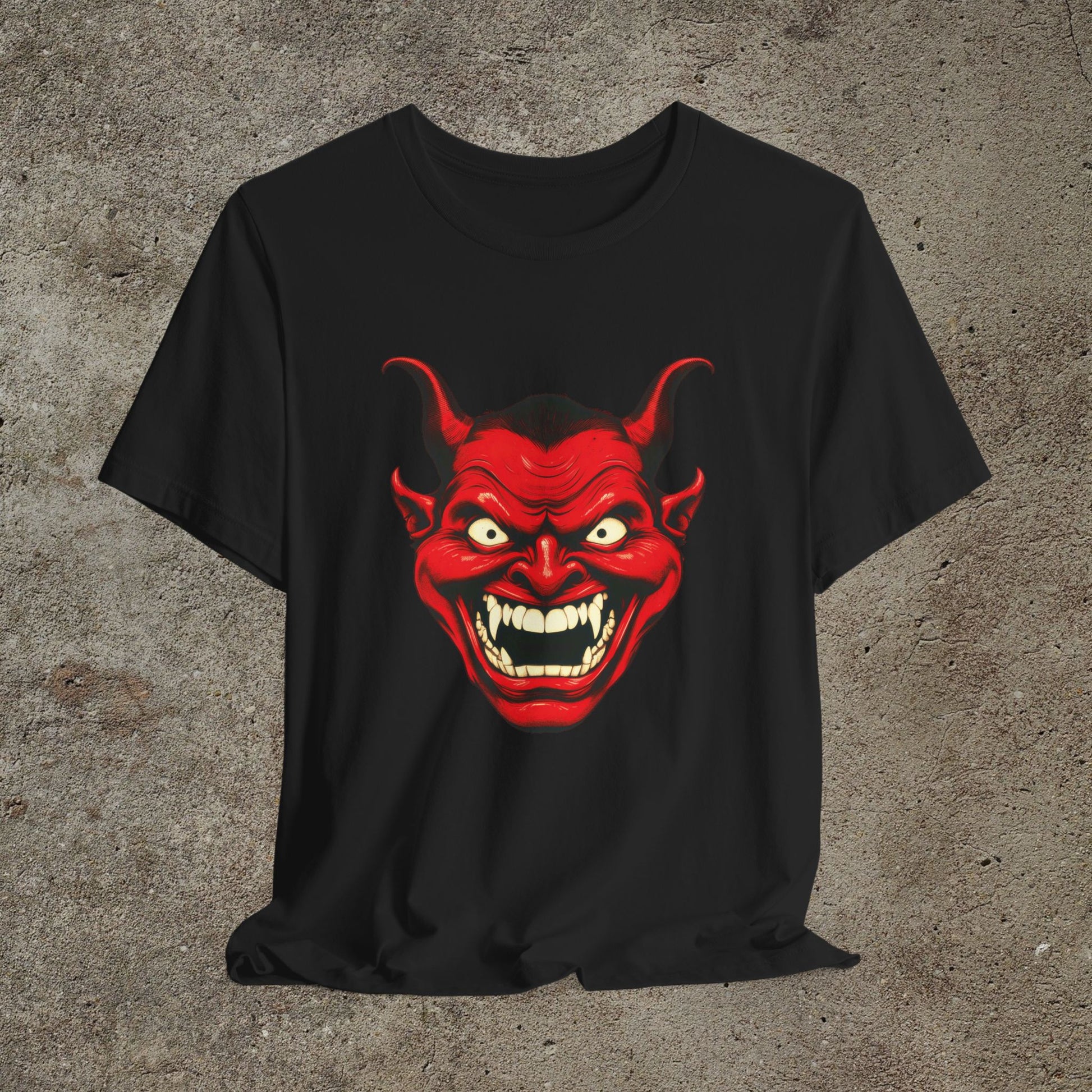 Red Devil Smiling Face Unisex Graphic Top, Occult Devil Satan Tee, Smiling Retro Satan Face T-Shirt