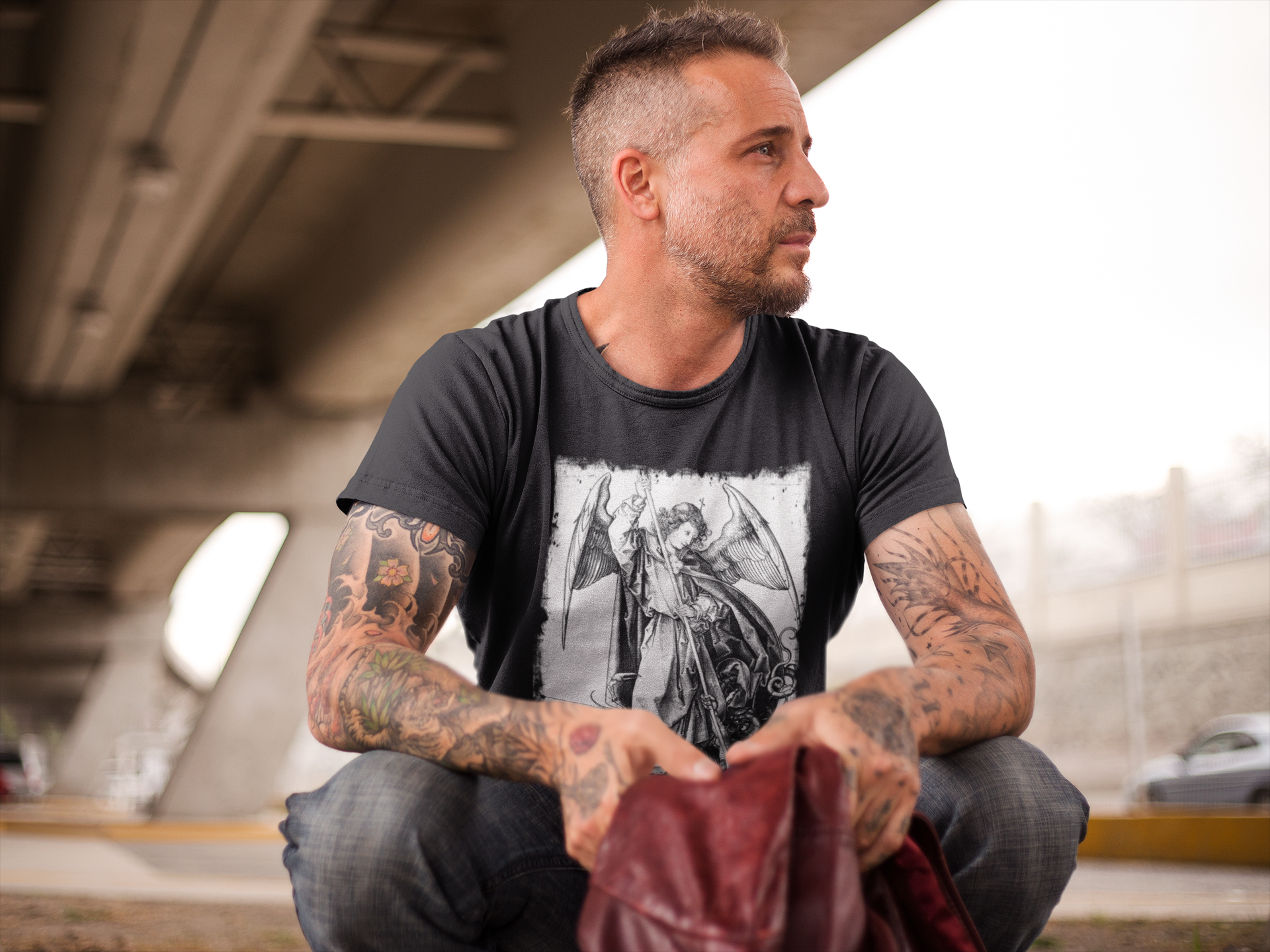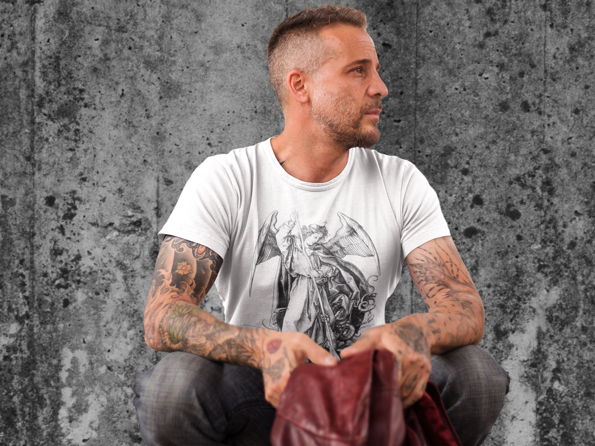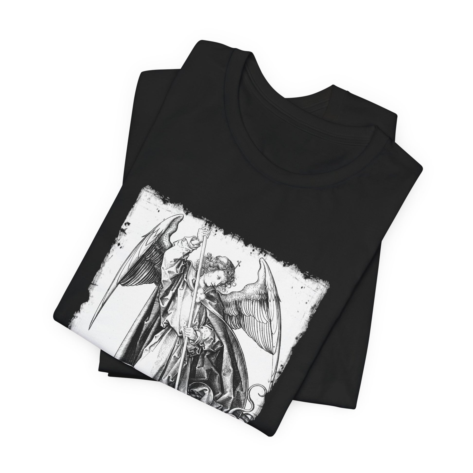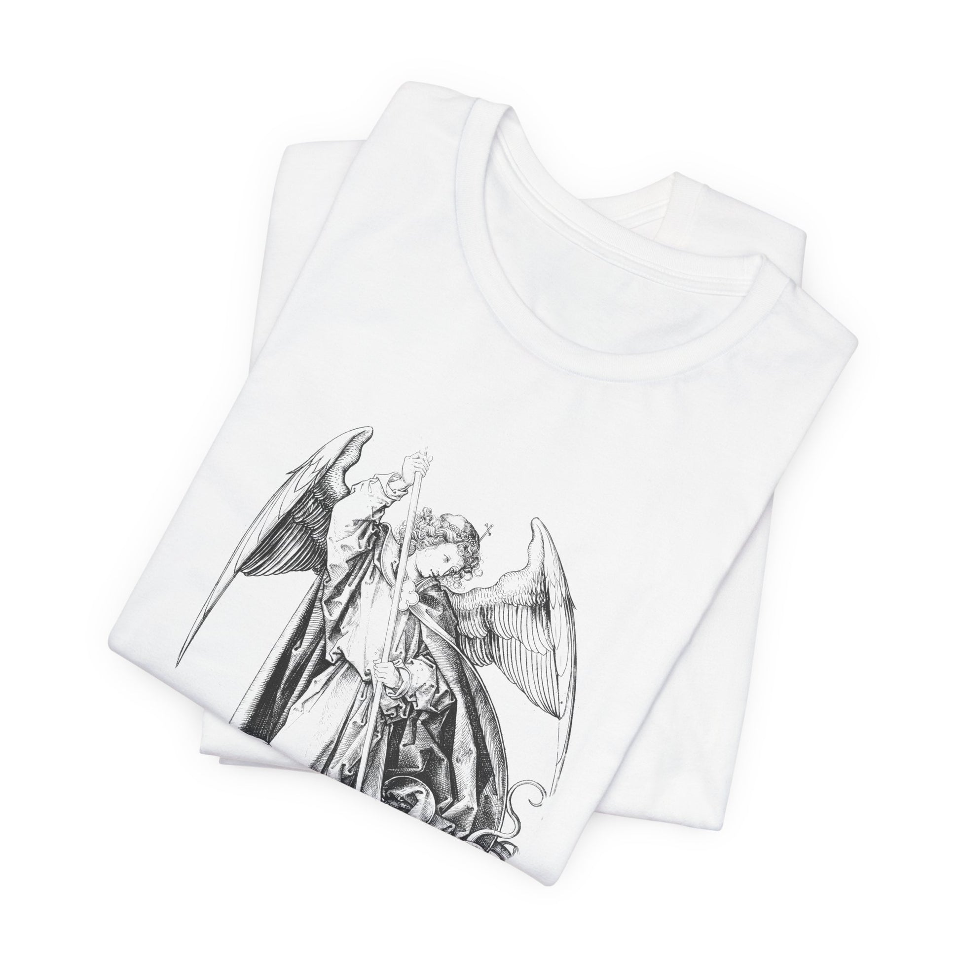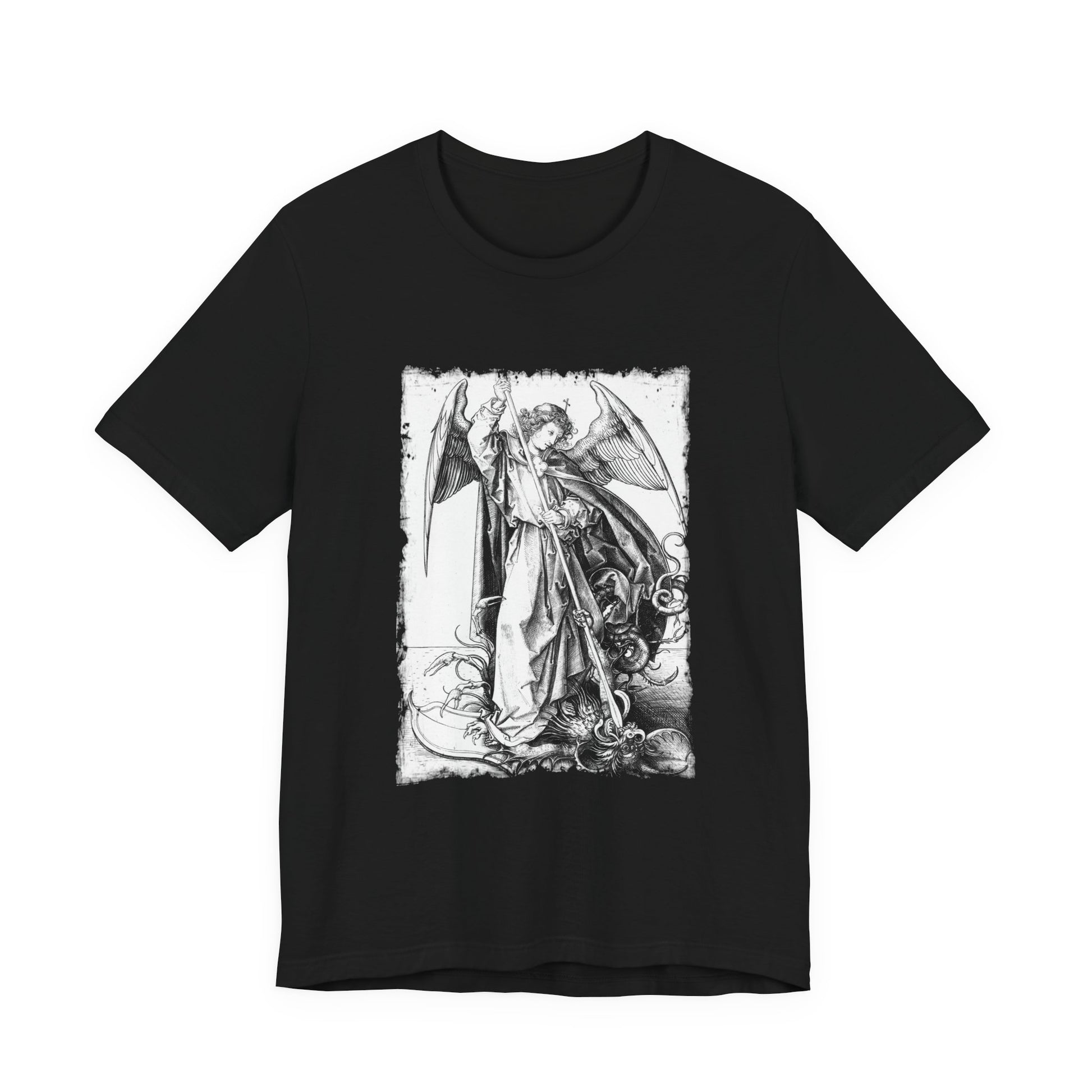 Saint Michael Slaying the Dragon Graphic Tee, Medieval Unisex Top, Gothic Print T-Shirt