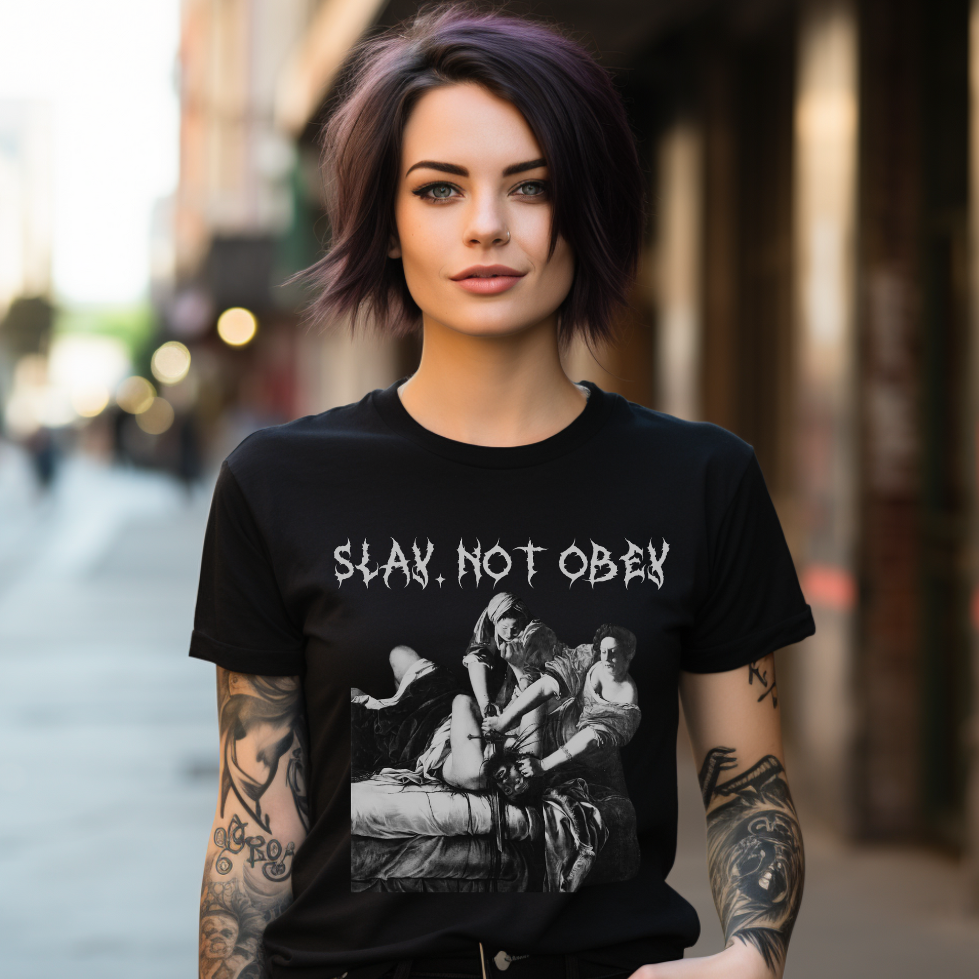 slay not obey, feminist shirt, anti patriarchy tee, judith beheading holofernes, women power tshirt, unisex top